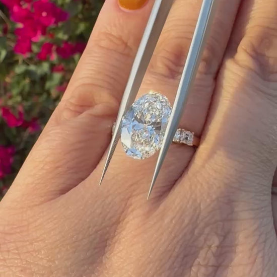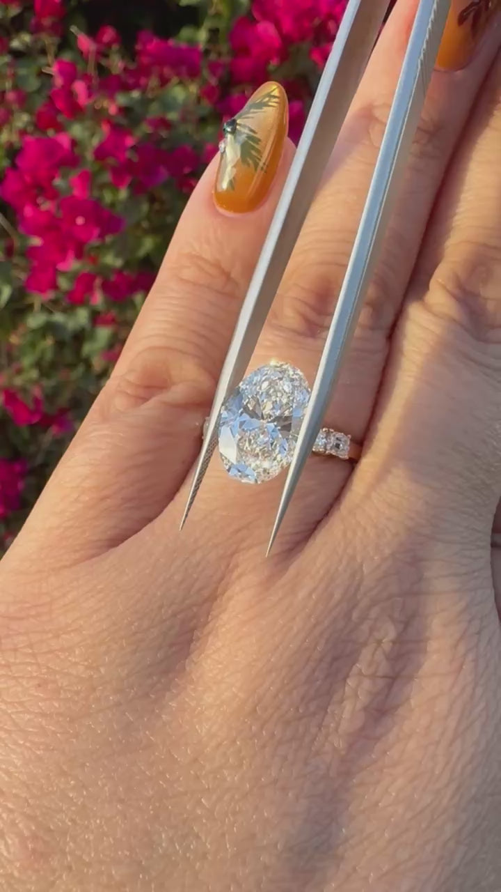 This is a GORGEOUS 4.37ct F color VS1 clarity lab grown oval shaped diamond. Ready to ship today!!! You can purchase this and we can chat a custom setting for her, or I can ship the loose stone and you can source the mounting elsewhere.
